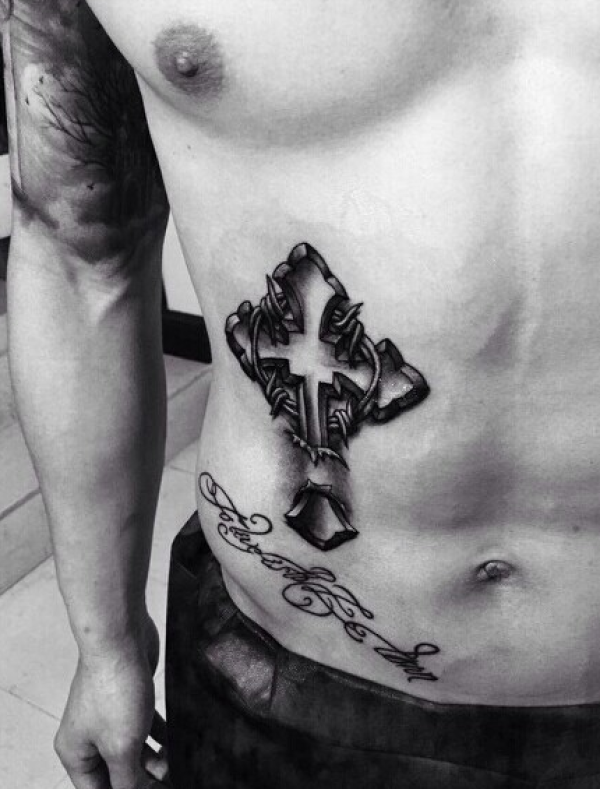腹部个性十字架纹身图案