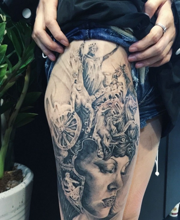 女性人物纹身图案 男生大臂纹身女性人物纹身图案