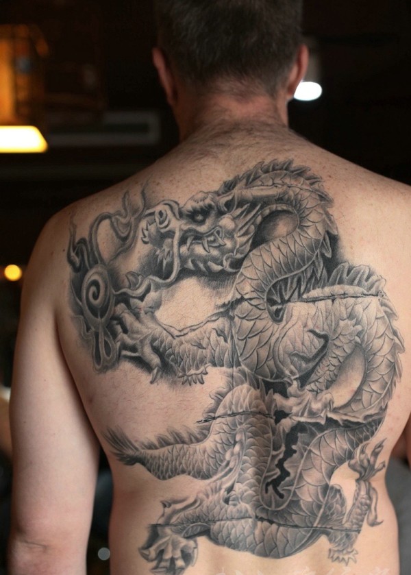满背黑白邪龙纹身图案威武自信
