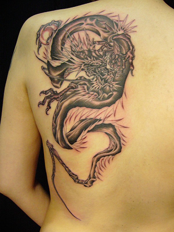 龙纹身手稿_一组老传统黑灰龙手稿纹身图案