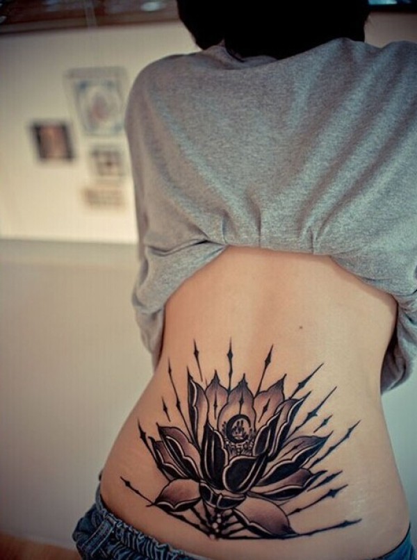 女性腰部莲花花纹刺青_腰部纹身图案大全_纹身图吧