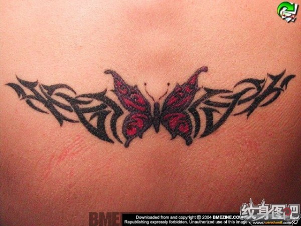 分享一款腰部时尚性感的蝶恋花纹身图案_腰部纹身图案大全_纹身图吧