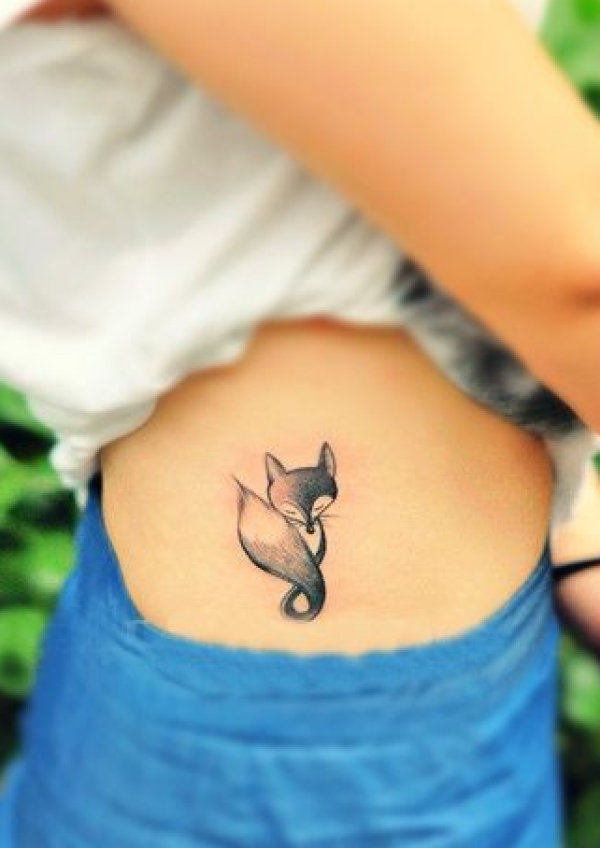 美女腰侧个性狐狸纹身