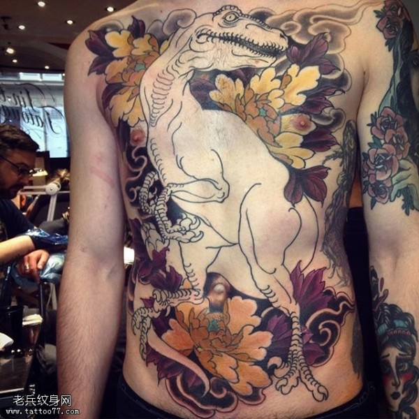满腹经典花卉恐龙纹身图案