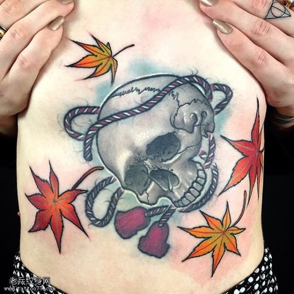 腹部枫叶骷髅纹身图案