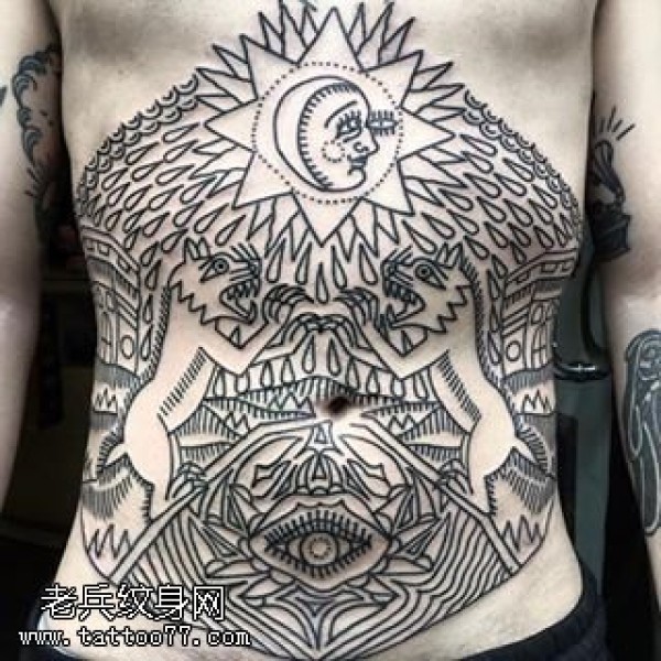 满腹线条图腾纹身图案
