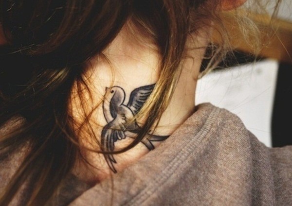 女生颈部漂亮唯美的燕子纹身