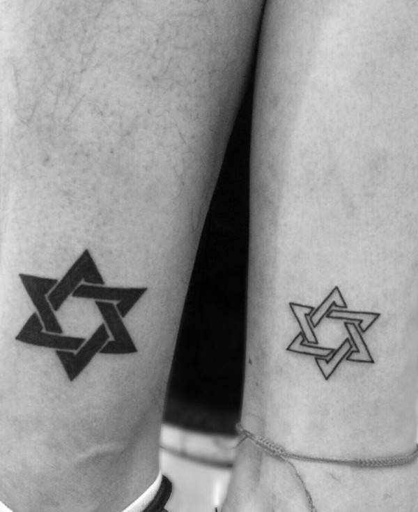 两个三角形的交汇代表了融合和圆满的情侣纹身