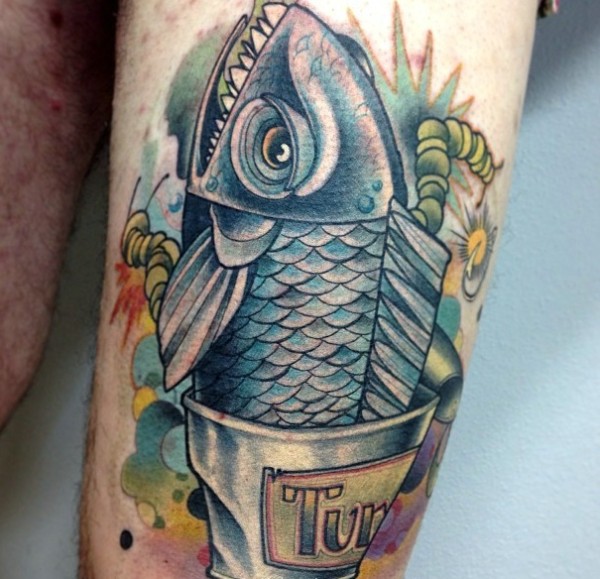 落在大腿部落的大鲤鱼纹身炯炯有神