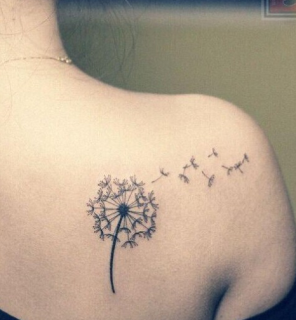 女生肩部唯美的蒲公英纹身