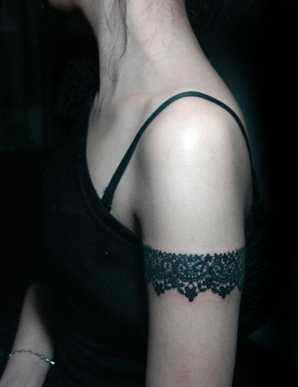 女生个性蕾丝臂环纹身