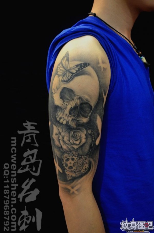 个性手臂悲伤的骷髅纹身图案图案图片_骷髅纹身图案大全_纹身图吧