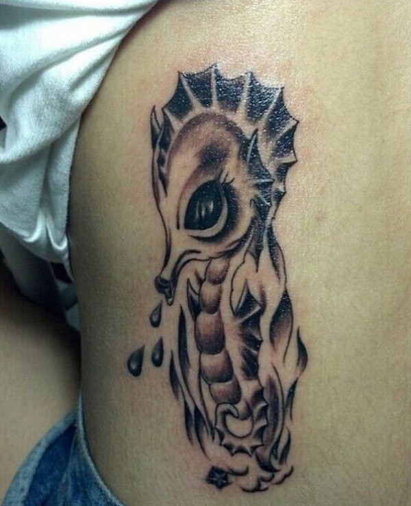 创意侧腰可爱的海马纹身图案
