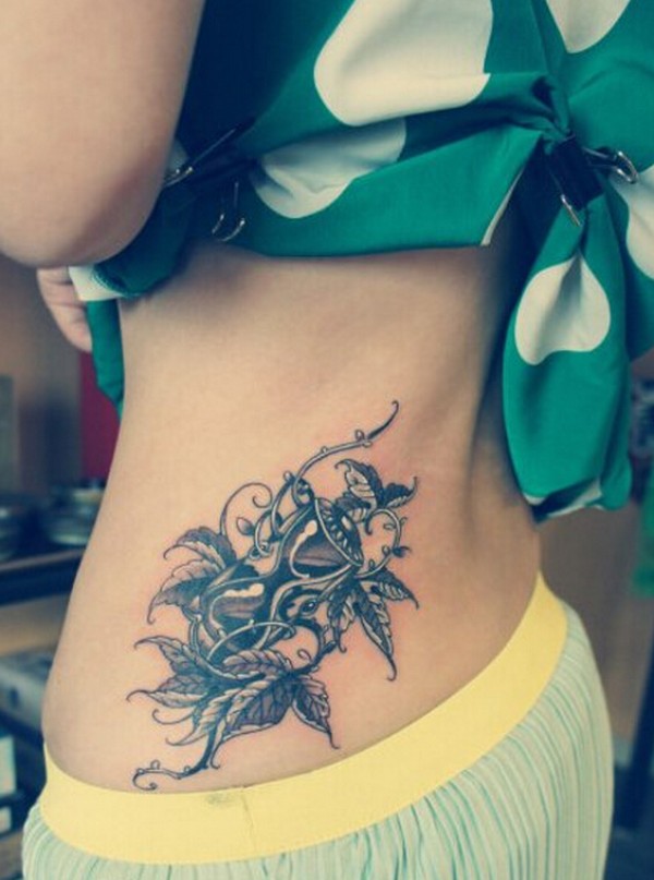 分享一款腰部时尚性感的蝶恋花纹身图案_腰部纹身图案大全_纹身图吧