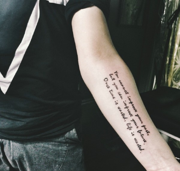 处在女生手臂三排简单英文纹身