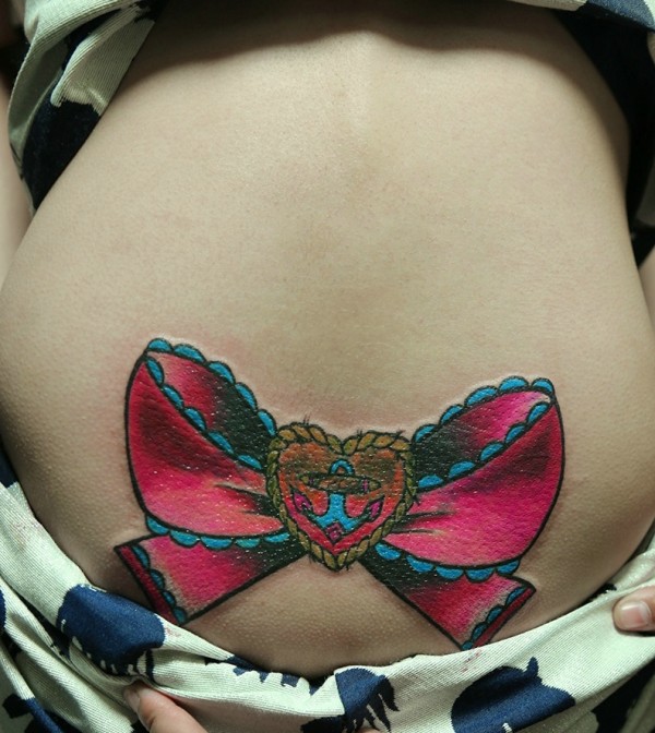 多种颜色搭配的3d蝴蝶结纹身非常抢镜
