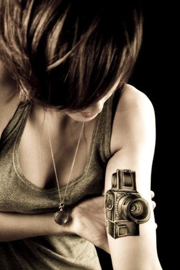 美女手臂老式相机纹身
