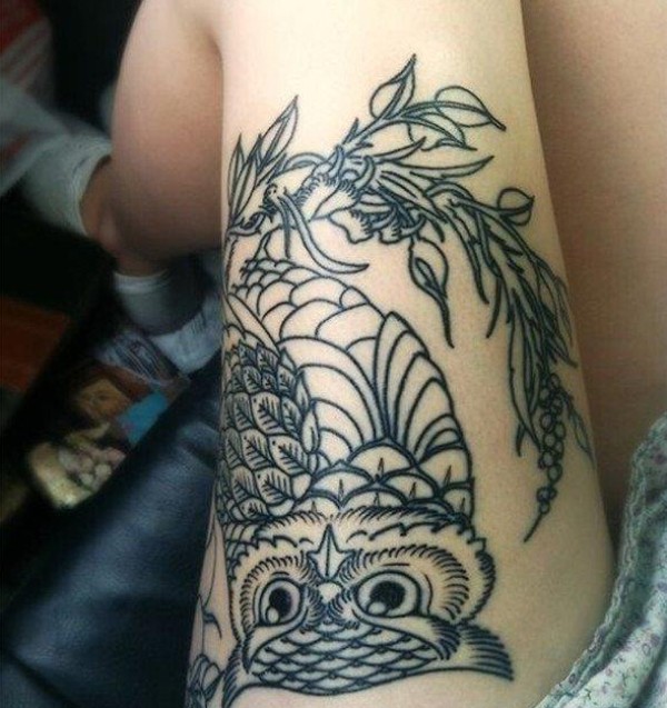传统鲤鱼花小腿纹身_腿部纹身图案大全_纹身图吧
