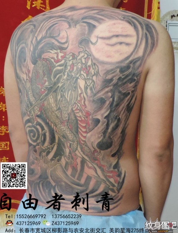麒麟加背景完成,长春自由者刺青