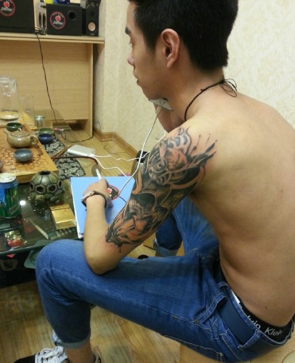 弱小的身体也阻止不了爱纹身的他手臂纹身