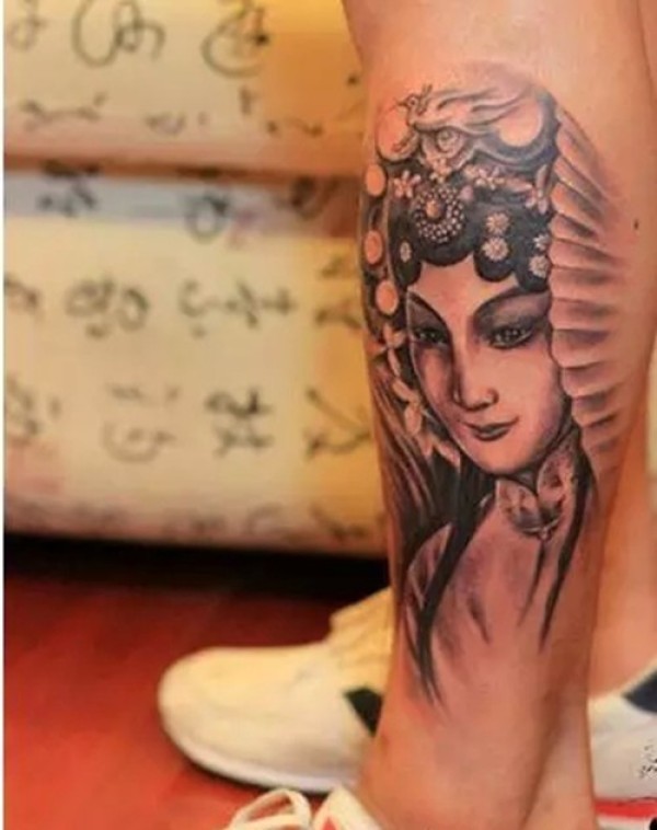小腿艺妓纹身图案