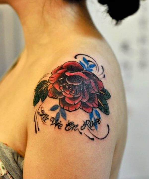 女生肩花纹身_15张女性双肩对称的肩花纹身图案作品图片