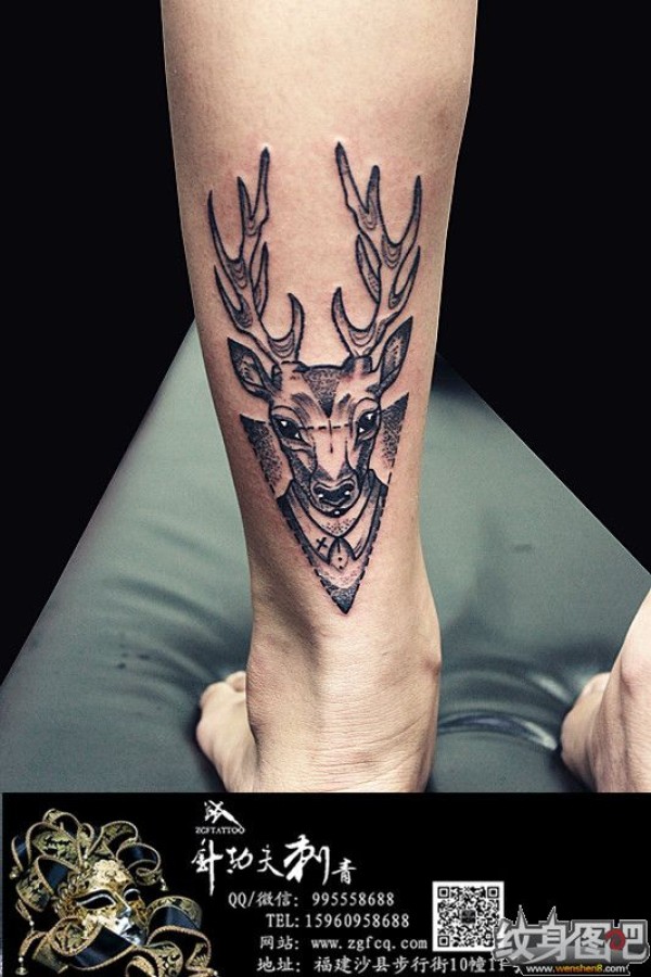 小腿纹身、鹿纹身、福建纹身、针功夫纹身、鹿纹身图片