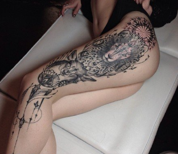传统花腿纹身--18张传统风格的大花腿纹身图案作品
