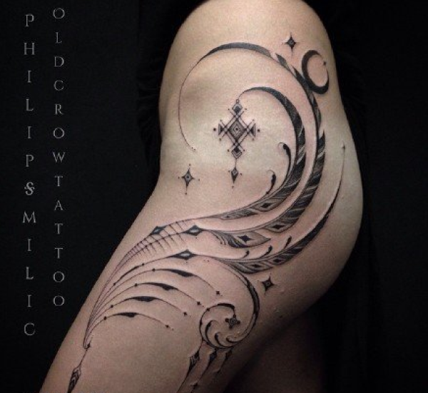 传统花腿纹身--18张传统风格的大花腿纹身图案作品