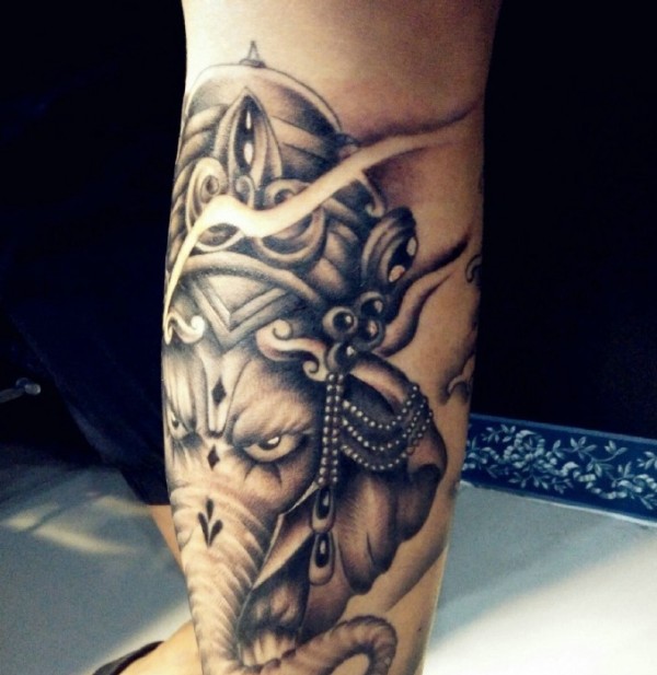 小腿上一款大象纹身图案_腿部纹身图案大全_纹身图吧