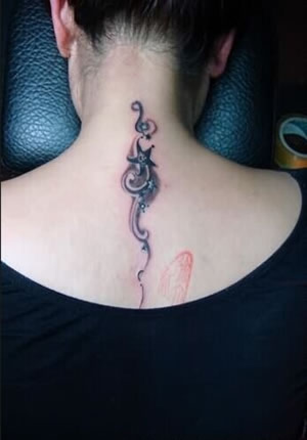 后颈部纹身小图--9张女生脖子后颈处的简约纹身图案