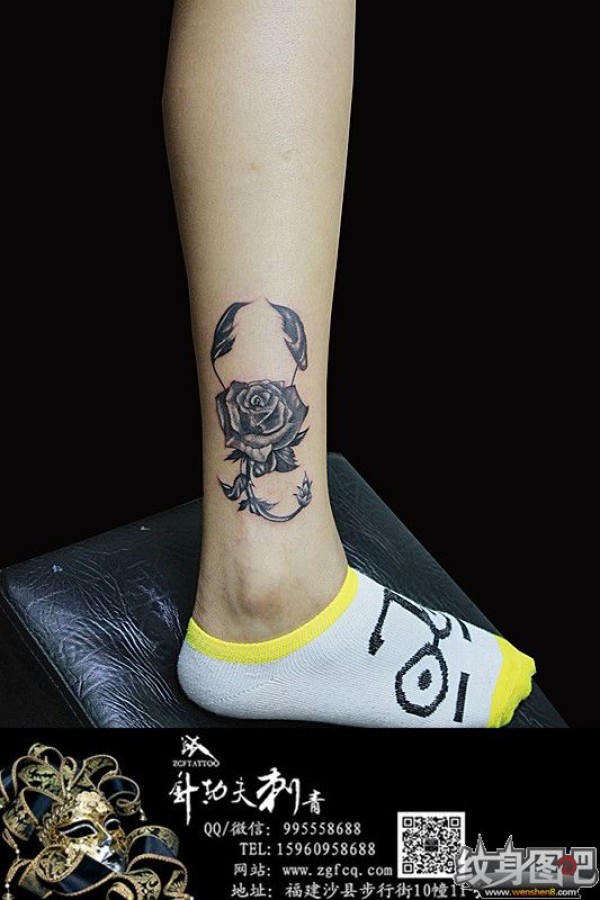 玫瑰纹身、小腿纹身、个性纹身、福建针功夫胡宇纹身作品