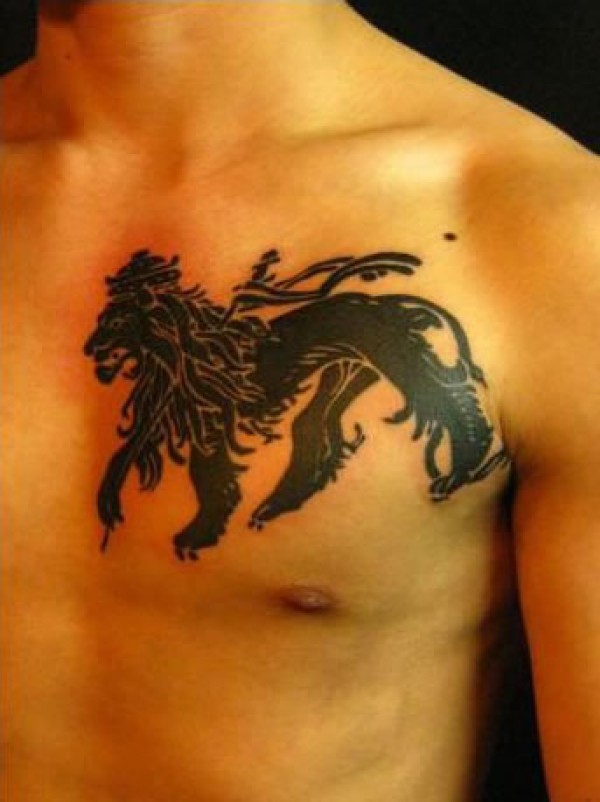 胸部狮子图案图腾纹身