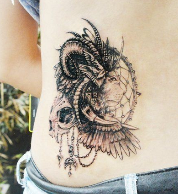 侧腰霸气老虎头纹身_腰部纹身图案大全_纹身图吧