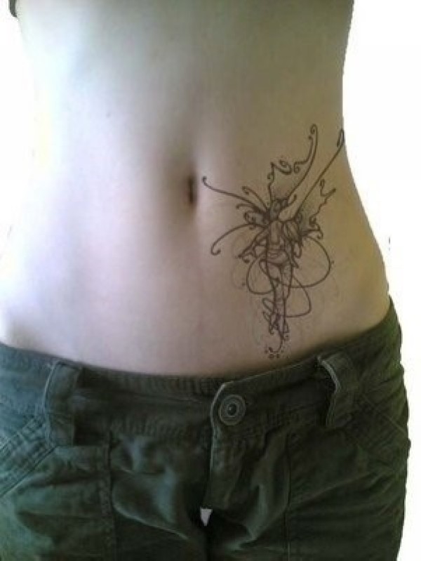 分享一款腰部时尚性感的蝶恋花纹身图案_腰部纹身图案大全_纹身图吧