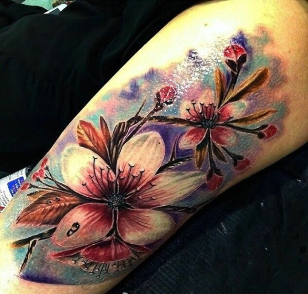 清新花朵腿部纹身图案图片_植物纹身图案大全_纹身图吧