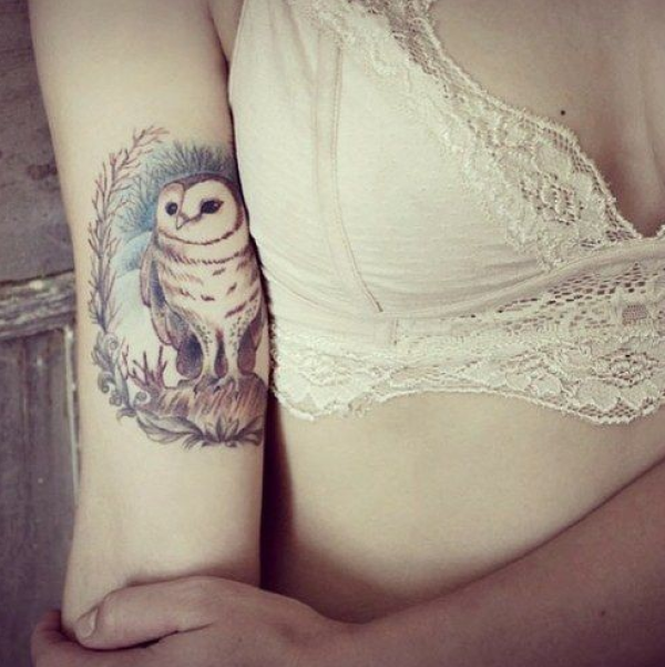 手臂好看的猫头鹰纹身