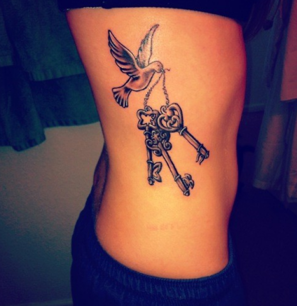 分享一款腰部时尚性感的蝶恋花纹身图案_腰部纹身图案大全_纹身图吧