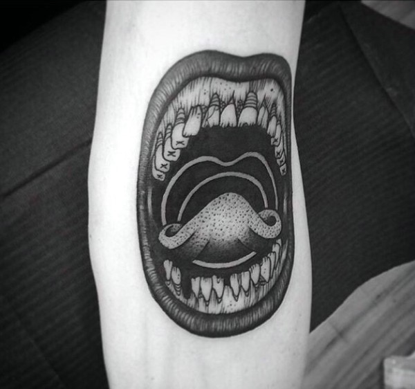透露着嘴巴舌头和牙齿的搞怪纹身