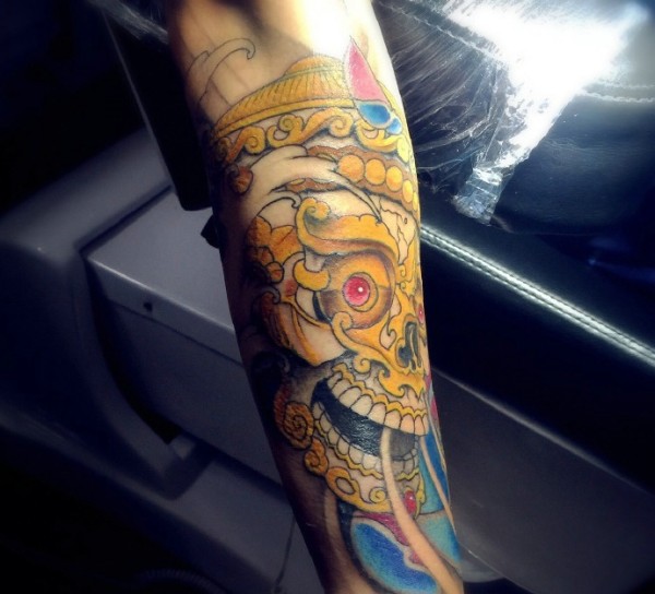 传统的嘎巴拉莲花手臂纹身