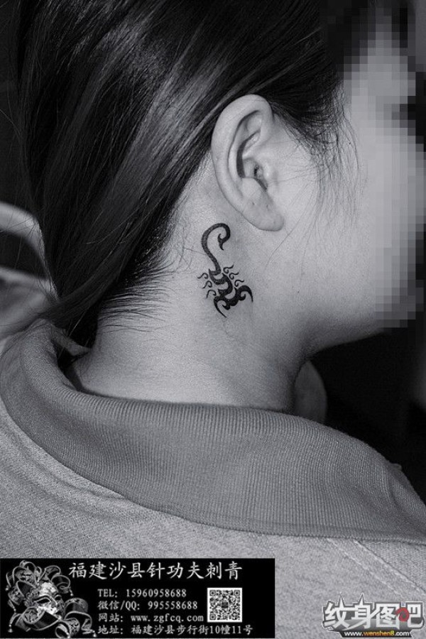 后颈部纹身小图--9张女生脖子后颈处的简约纹身图案