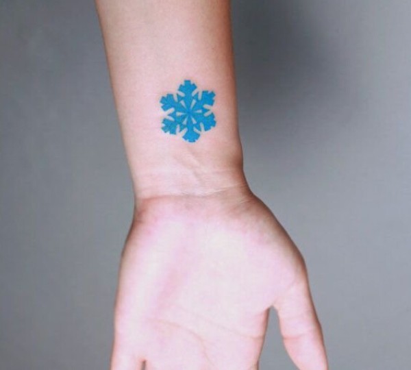 清新蓝色雪花手腕纹身图案