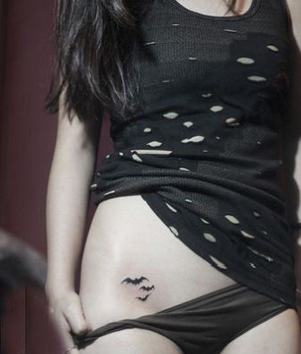 女孩子腹部潮流的图腾小蝙蝠纹身图片