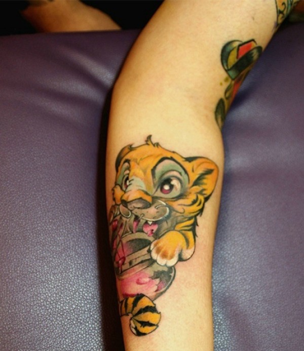 手臂有着非常可爱好玩的小老虎纹身