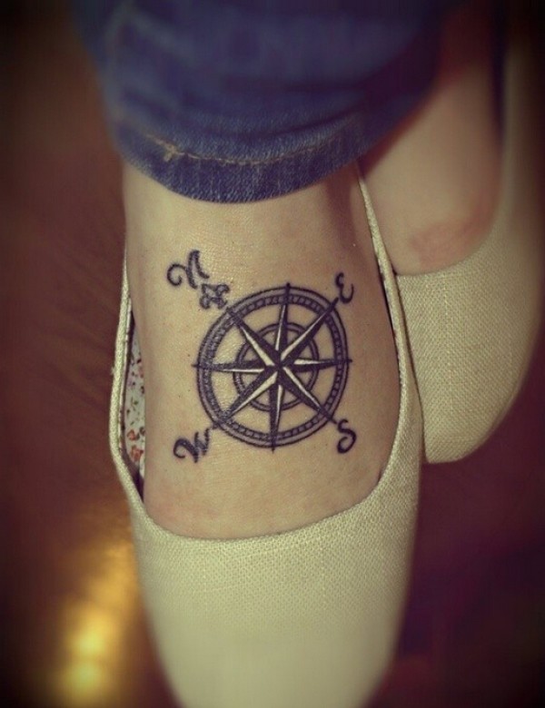 脚背上个性指南针纹身