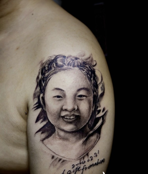 女性肩部肖像刺青_肖像纹身图案大全_纹身图吧