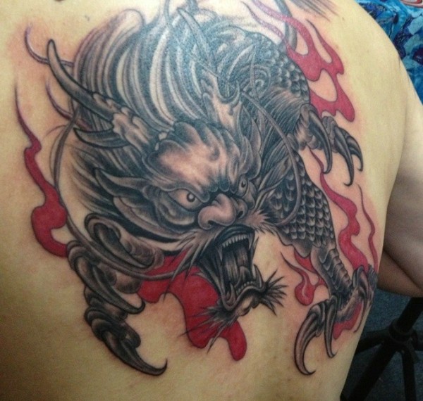 男士背部非常凶猛的麒麟纹身