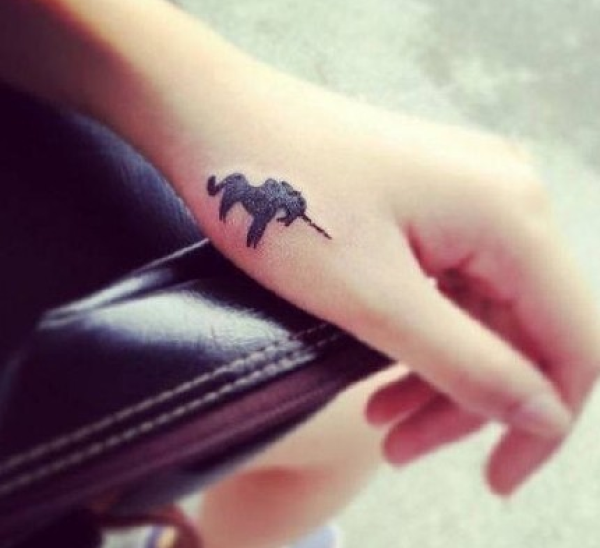 女生虎口黑色小独角兽纹身