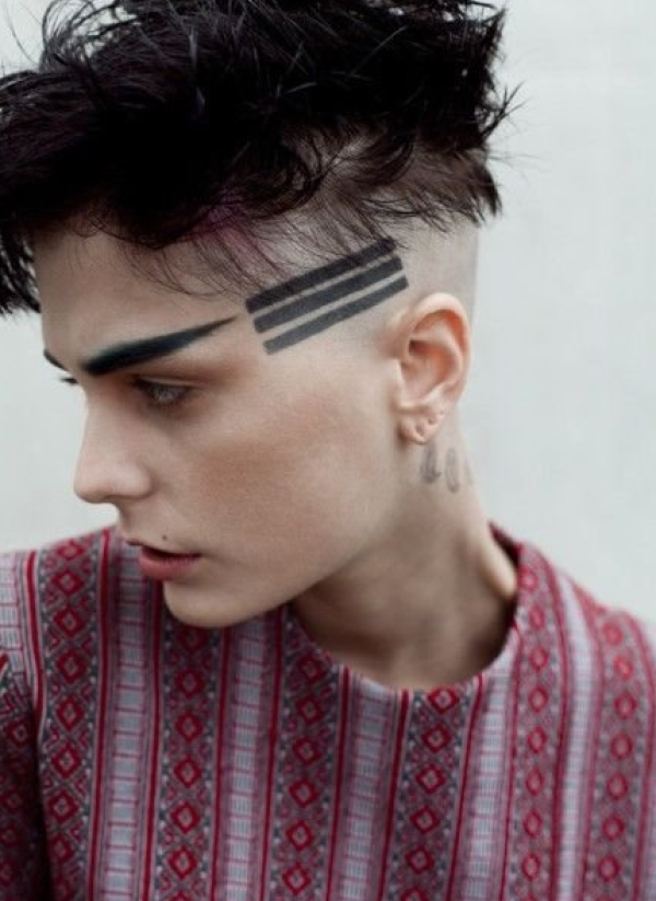 头部纹身图案 个性十足的男生头部纹身图案