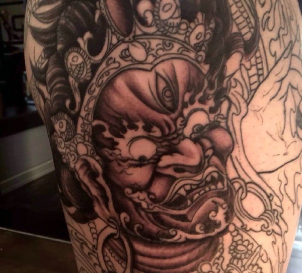 传统花腿纹身--18张传统风格的大花腿纹身图案作品
